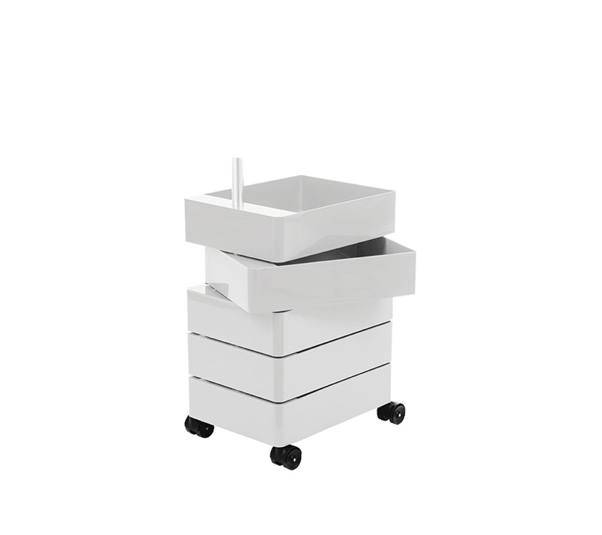 Der 360° Container wurde von Konstantin Grcic zusammen mit dem gleichnamigen Stuhl für den italienischen Hersteller Magis entworfen. Die Idee hinter dem Schubkastencontainer ist die Förderung des dynamischen Arbeitens. Die einzelnen Schubkästen sind um 360° drehbar und können von jeder Seite genutzt werden.