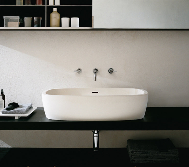 Das Waschbecken Deep nimmt das tiefe, umschließende Design des gleichnamigen Wannenmodells auf und verleiht jeder Komposition eine unverwechselbare Persönlichkeit. Hergestellt aus Cristalplant® biobased in Weiß.