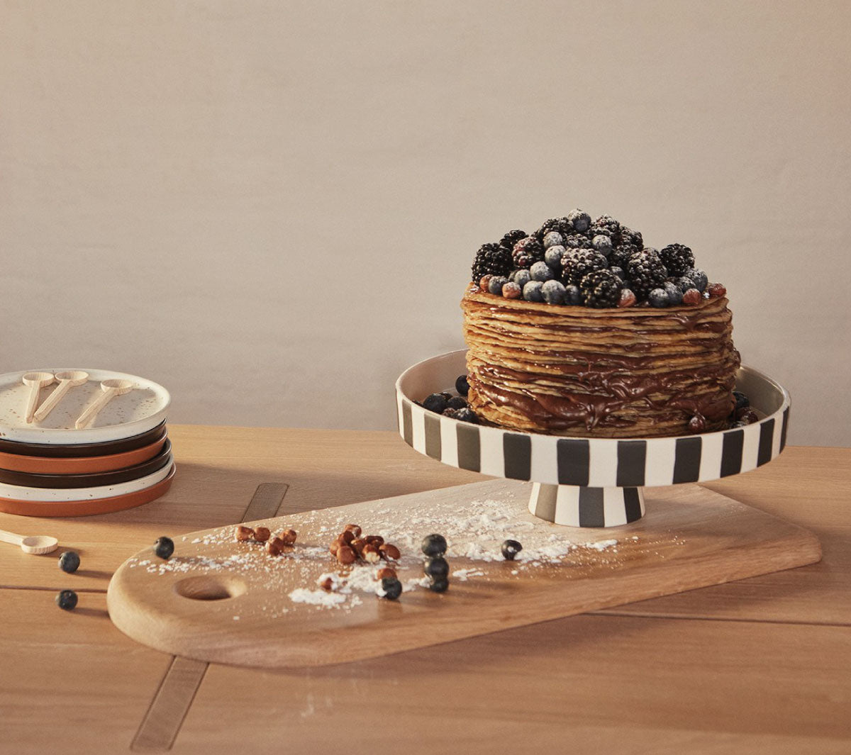 Das Toppu Tablett von OYOY Living zeichnet sich durch seinen verspielten Streifen-Look aus, der für einen tollen Blickfang auf dem Esstisch oder dem Sideboard sorgt. Als klassische Etagere genutzt, lassen sich Snacks und Süßigkeiten für Gäste oder die Familie ansprechend darauf servieren. Doch auch als Aufbewahrung für Schmuck und Kosmetik kann das Toppu Tablett wunderbar genutzt werden. Das Tablett ist handgefertigt und besteht aus Keramik, das anschließend mit Streifen verziert wird. Reinigen lässt Toppu sich mit einem feuchten Tuch.