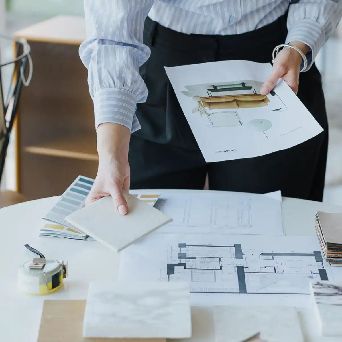 We translate design concepts into precise executive drawings and physical samples (mock-ups), ensuring quality control before production begins.