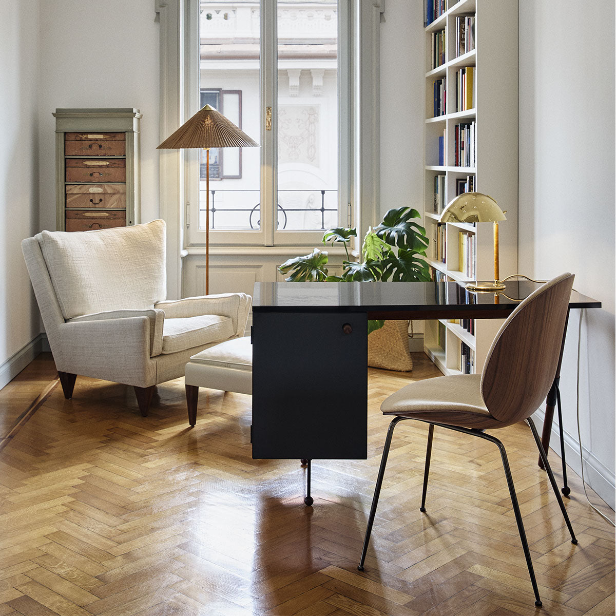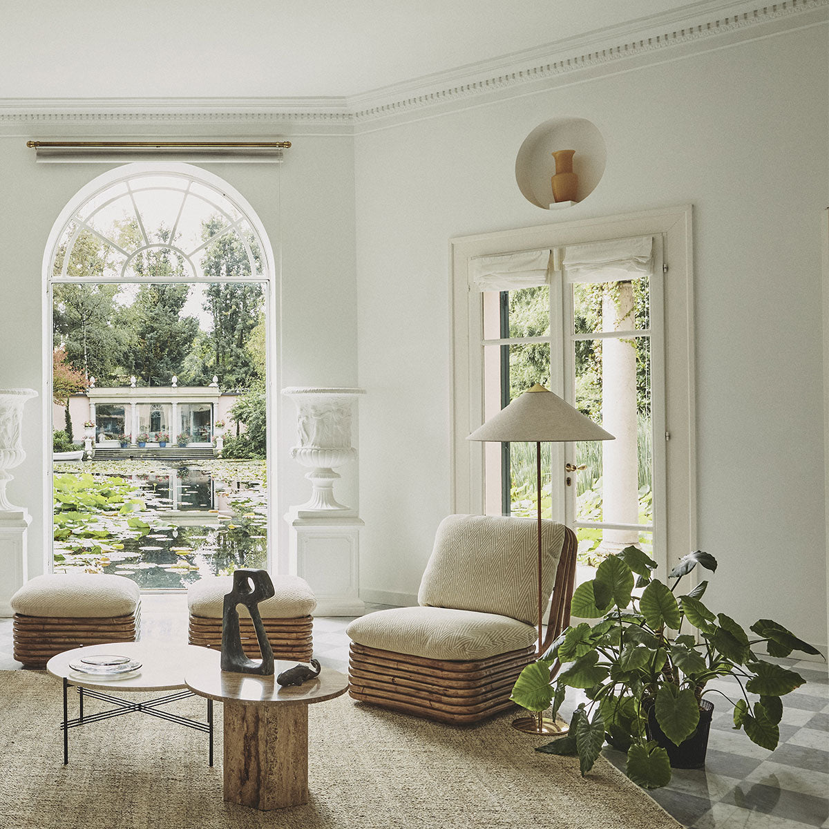 The beautiful floor lamp 9602, also known as “Chinese Hat” was designed by Paavo Tynell in 1935 for the Hotel Aulanko. Characterised by its elegant and airy lampshade and rattan-covered stem, the 9602 Floor Lamp shows the designer’s limitless imagination and unparalleled ability to create designs of enduring beauty. Adding a playful, exuberant quality to the top, balanced by the more static form of the base, the 9602 Floor Lamp is perfectly suited for creating a gentle ambient light in the domestic living room.2x E27 810 Lumen (~ 6W-10W LED), bulbs not included.