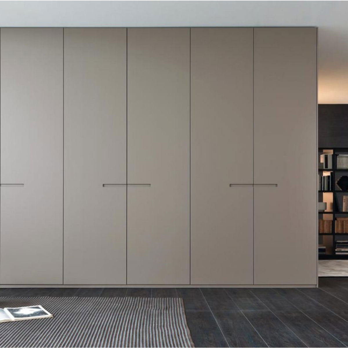 Wardrobe with hinged doors. Finishes: Mat lacquer, oak open pore lacquer, oak veneer.