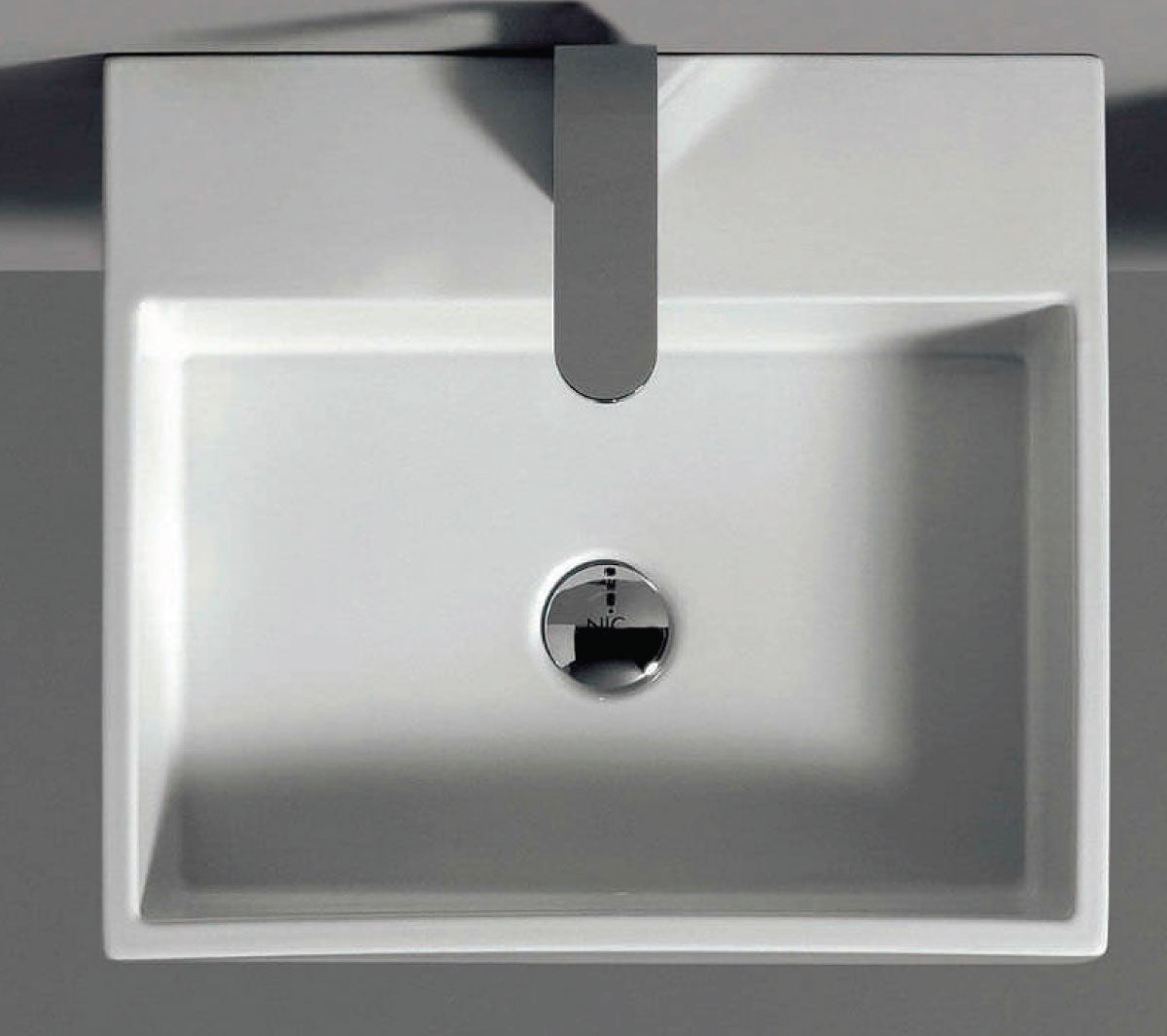 Countertop ceramic washbasin with overflow.Con foro per rubinetto.
