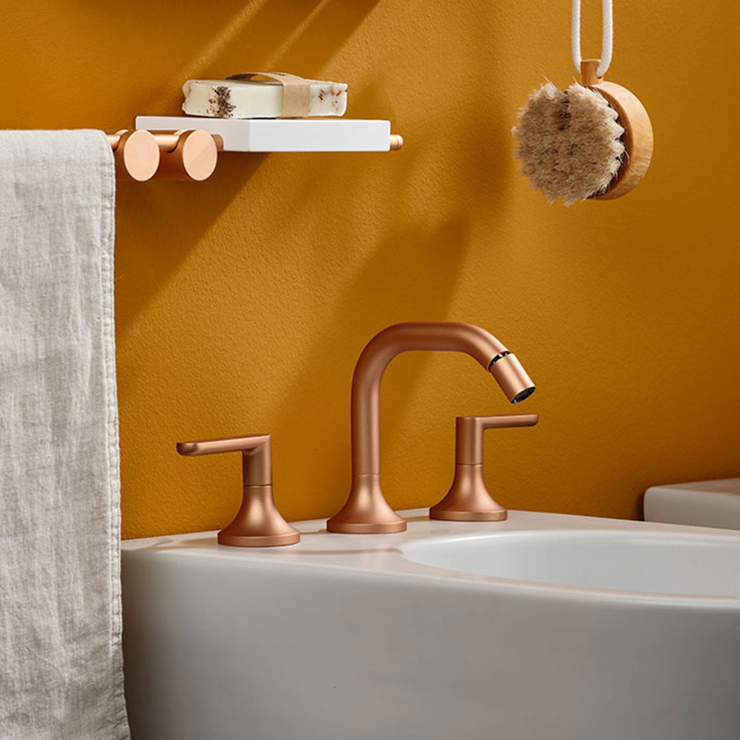 Disponibili nella collezione: miscelatori lavabo e bidet, gruppi vasca, gruppi doccia, comandi remoti.