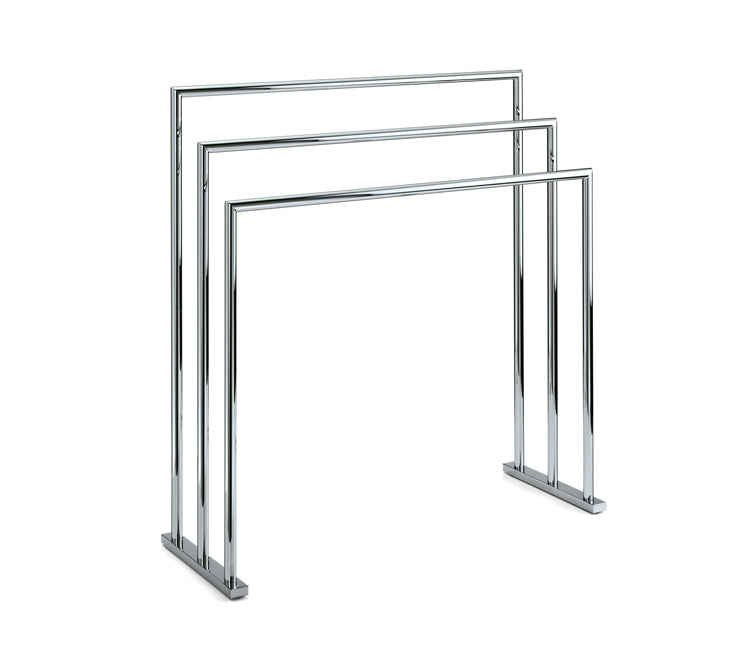 Chrome towel stand with three bars.