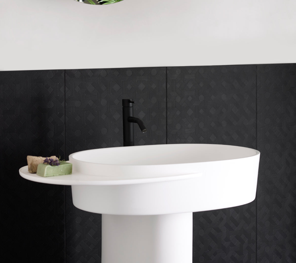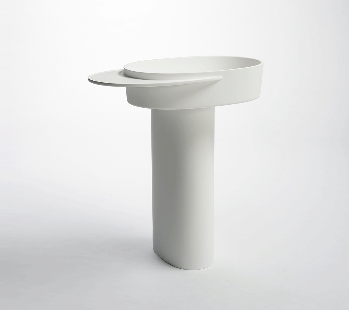 Washbasin that reintroduces the functionality and aesthetic of the bathtub, featuring the sidetrack tray as the trademark of the entire collection. Available in rounded and oval shapes, Plateau washbasin can be crafted with the tray on the left or on the right side as well as on a upper or lower positions or without a tray, to meet any need and preference. Available with a freestanding column or as a counter top basin. Plateau washbasins in made in LivingTec® a compact, not porous and non toxic high-tech material created to satisfy the highest standard of quality, technology and environment.With wall drain and taphole for high raised basin mixer.