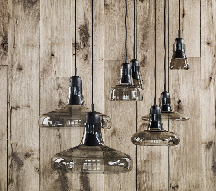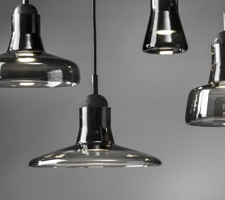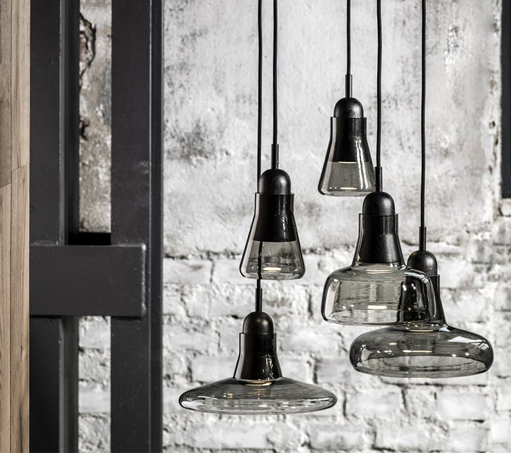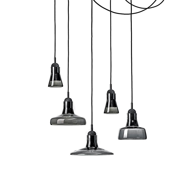 Shadows is a pendant lamp whose design is inspired by the classic atelier spotlights. Using a perfect combination of colors and finishes, Shadows finds multiple contexts of use. The lamps are made of different types of glass shade supported by a wooden support. Shadows lamps are powered by LED light sources hidden in the neck of the wood. Shadows 5 Set Free consists of a metal round canopy designed to hang a total of 5 lamps Shadows.