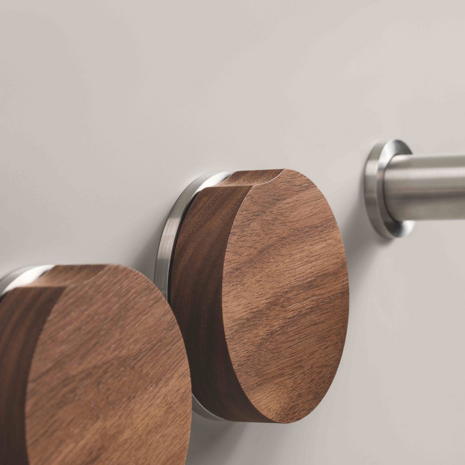La rubinetteria è completata dalla collezione di accessori Giotto, in cui la linea del cerchio si ripete più volte enfatizzandone il concetto di perfezione.