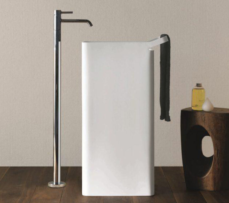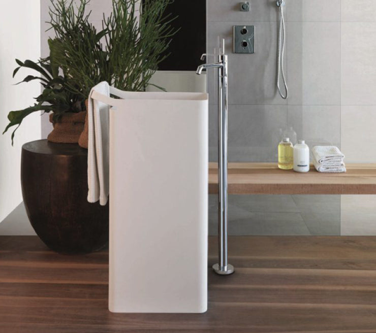 LAB 03 della collezione Lab di KOS è un lavabo in Pietraluce free standing in Cristalplant con scarico a pavimento e maniglia portasalviette, completo di kit per fissaggio a pavimento (7L031BI). Lab Collection è una serie di lavabi free standing e appoggio caratterizzati da uno shaping ibrido. Scultorea complessa architettonica nella forma e nel materiale Lab Collection offre un'ampia versatilità funzionale: monoblocco free-standing componibile free-standing appoggio. Un vero e proprio progetto di architectural-design per un ambiente bagno sofisticato ed elegante. Awards: Compasso d’Oro ADI 2011; Segnalazione ADI Design Index 2010.
