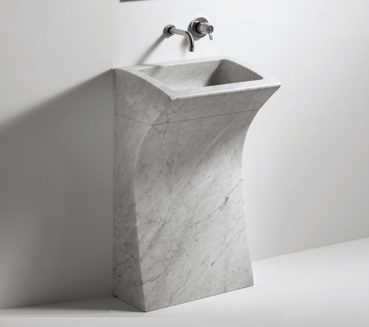 La ricerca progettuale di Angelo Mangiarotti propone unulteriore variazione sul tema, con questo lavabo in marmo di Carrara dalle linee decise, dinamiche, emozionanti. Il design ed il materiale scultoreo di Lito 3, trasformano anche un piccolo spazio di servizio in un luogo pieno di fascino e personalità.Scarico libero, compreso di kit di fissaggio e piletta.