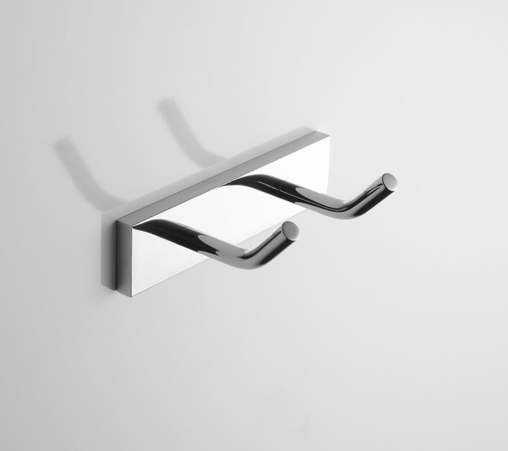 Appendiabiti a parete doppio in acciaio inox lucido.